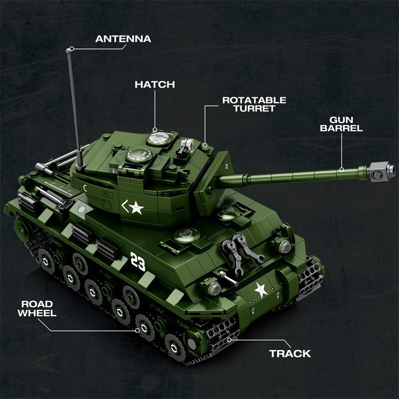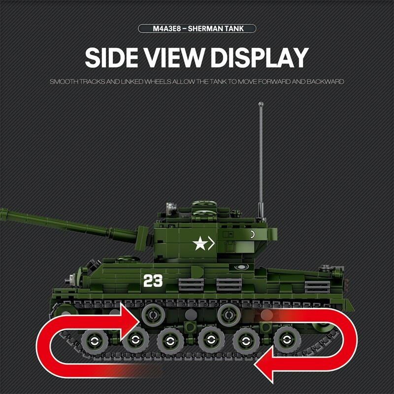 Model Reobrix 77030 Sherman M4A3E8 – World of Tanks Edition je věrnou replikou legendárního amerického tanku „Easy Eight“, který se stal symbolem spojeneckých sil během druhé světové války. Tento model, vyvinutý ve spolupráci s licencí World of Tanks, přináší dokonalou kombinaci historické autentičnosti, herního ducha a sběratelského detailu.