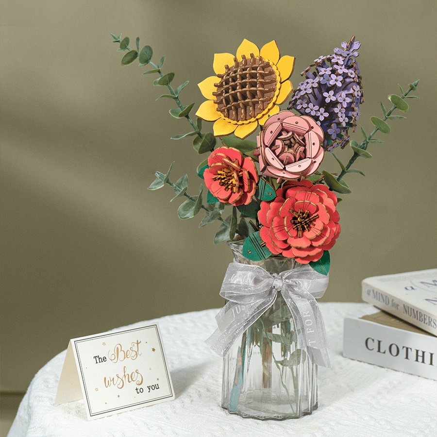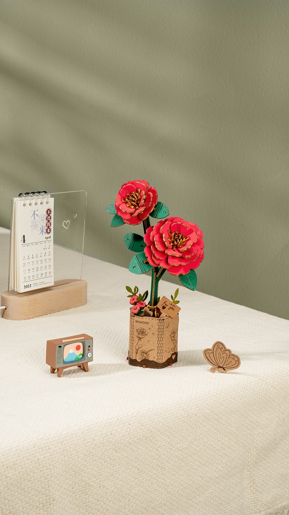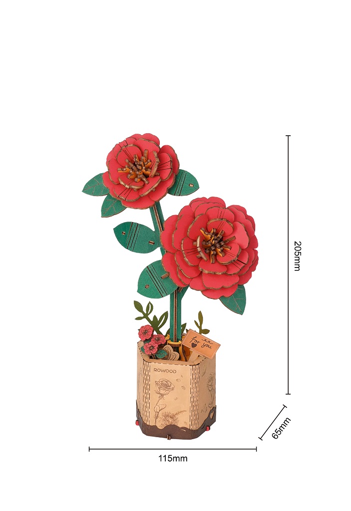 RoboTime 3D dřevěná skládačka Červená kamélie