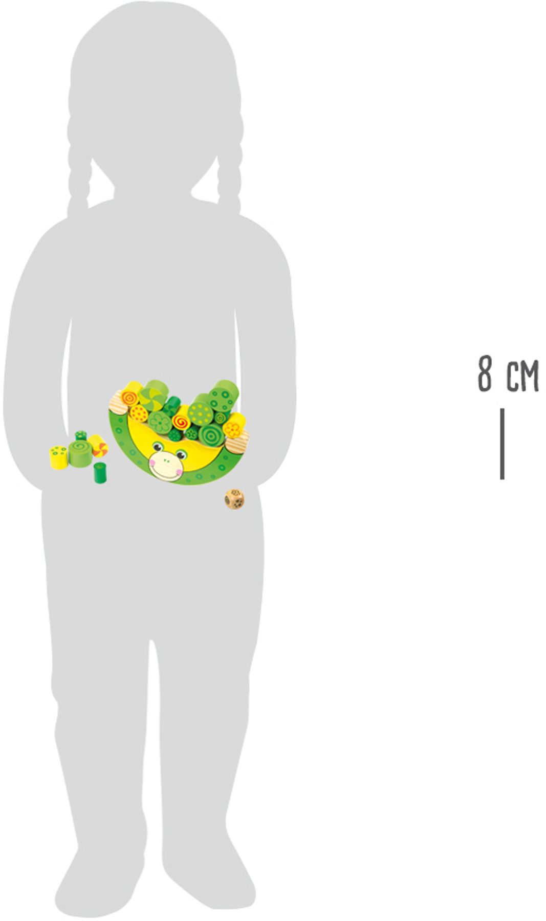 - 1 hráč: Hoď kostkou a příslušnou barvu polož na žabku. Hoď kostkou znovu a umísti další barevný váleček. Ujisti se, že žába drží rovnováhu a nespadne. Pokračuj ve hře do doby, než umístíš poslední váleček. Pokud ztratí žába rovnováhu a válečky spadnou, začni od začátku.