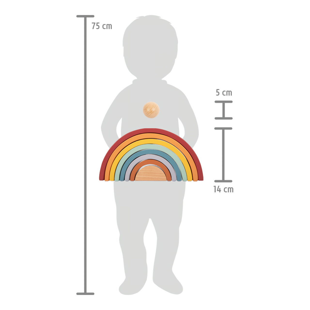Která barva je nejkrásnější? Dřevěnou duhu doplňuje dřevěná kulička. Tato robustní duha vyrobená ze dřeva včetně dřevěné kuličky v přírodní barvě je ideálním společníkem pro batolata. 8 dřevěných oblouků v trendových barvách duhy, lze použít různými způsoby k třídění, stavění nebo skládání. Zapůsobí na děti i rodiče svým přirozeným dojmem a obzvláště krásným vzhledem. Umožňuje volnou hru podle Montessori pedagogiky a zajišťuje, že se fantazii při hraní meze nekladou - pro děti všech věkových kategorií! Ti nejmenší nahlédnou do teorie barev a naučí se poznávat barvy. Duhové "Safari" je také ideální do každého dětského pokoje a je skutečným poutačem.