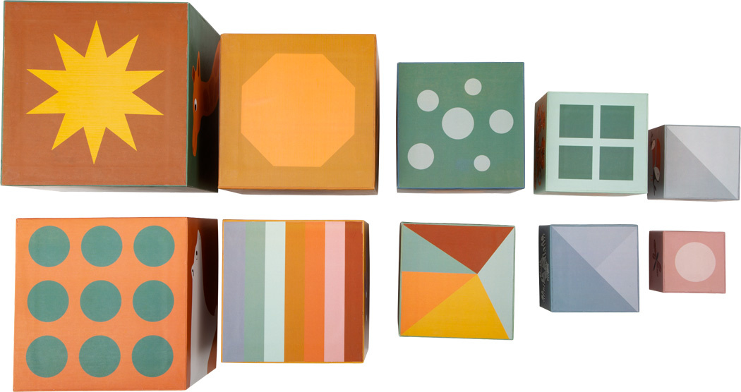 Největší kostka: 14x14x14 cm Nejmenší kostka: 5x5x5 cm Věk: 12m+ Materiál: karton