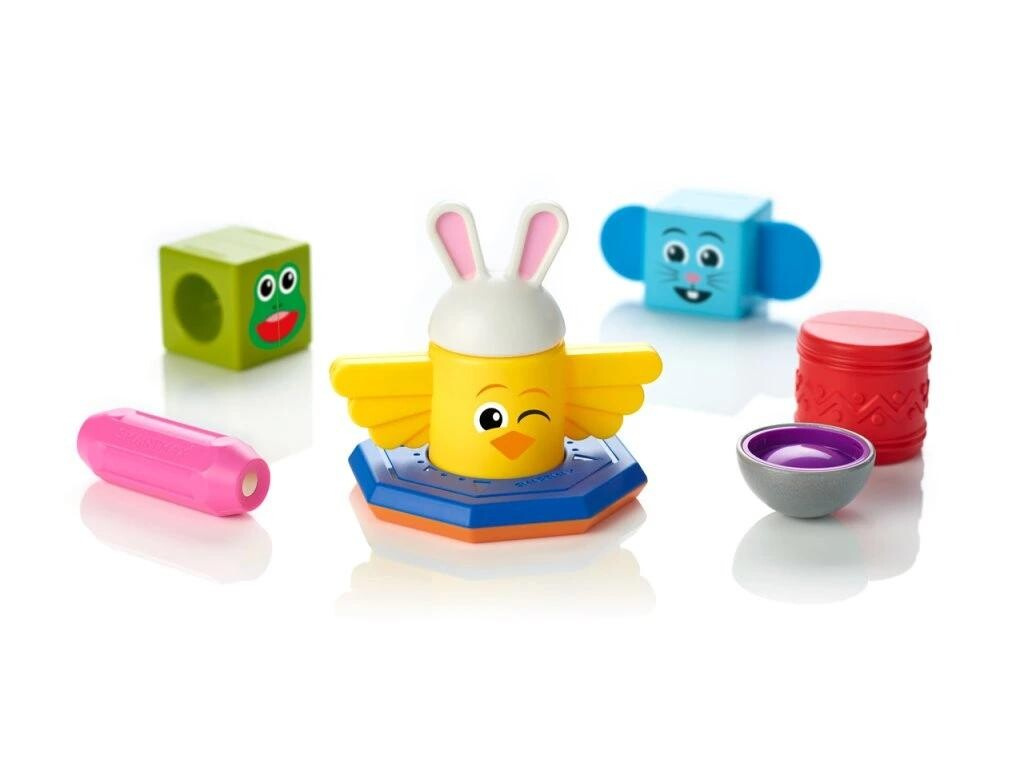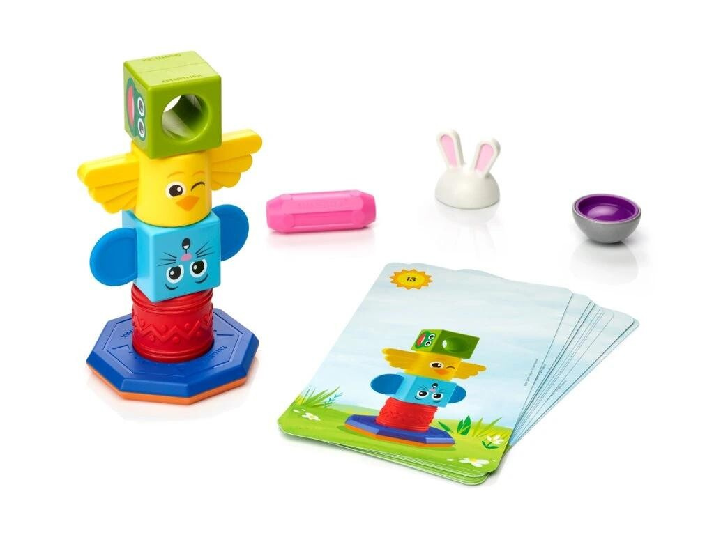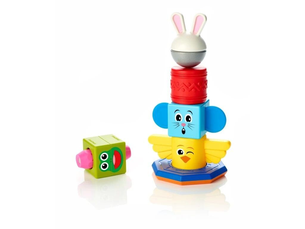 Magnetická hra Můj první totem je určena pro malé děti ve věku od 18 měsíců. Hra dětem nabízí hned několik aktivit. Děti bezpečným a zároveň zábavným způsobem objevují kouzlo magnetů. K dispozici děti mají 8 stavebních dílků s různými zvuky a texturami. Na některých kostkách jsou vyobrazené obličeje zvířátek. Ze stavebních bloků si děti postaví totem. Buď postupují podle předlohy a pokouší se vytvořit stejný totem jako je na obrázku, nebo později mohou vytvářet totemy podle své vlastní fantazie. Jednotlivé stavební bloky se díky magnetům jednoduše spojují. Všechny díly jsou dostatečně velké, jsou proto bezpečné i pro malé děti. Tato sada je kompatibilní s ostatními sadami stavebnic SmartMax.