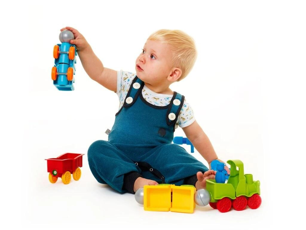 Děti si vytvoří svůj první vláček z lokomotivy a tří vagónků a 2 zvířátka. Souprava drží pospolu díky magnetům. Dílky jsou dostatečně velké, příjemné a snadné na manipulaci. Balení obsahuje celkem 25 dílků.