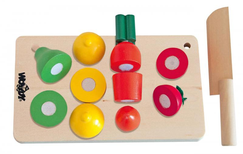 Hračka obsahuje dřevěné napodobeniny ovoce. Jednotlivé dílky jsou spojeny suchým zipem a je možné je jednoduše krájet přiloženým dřevěným nožem.