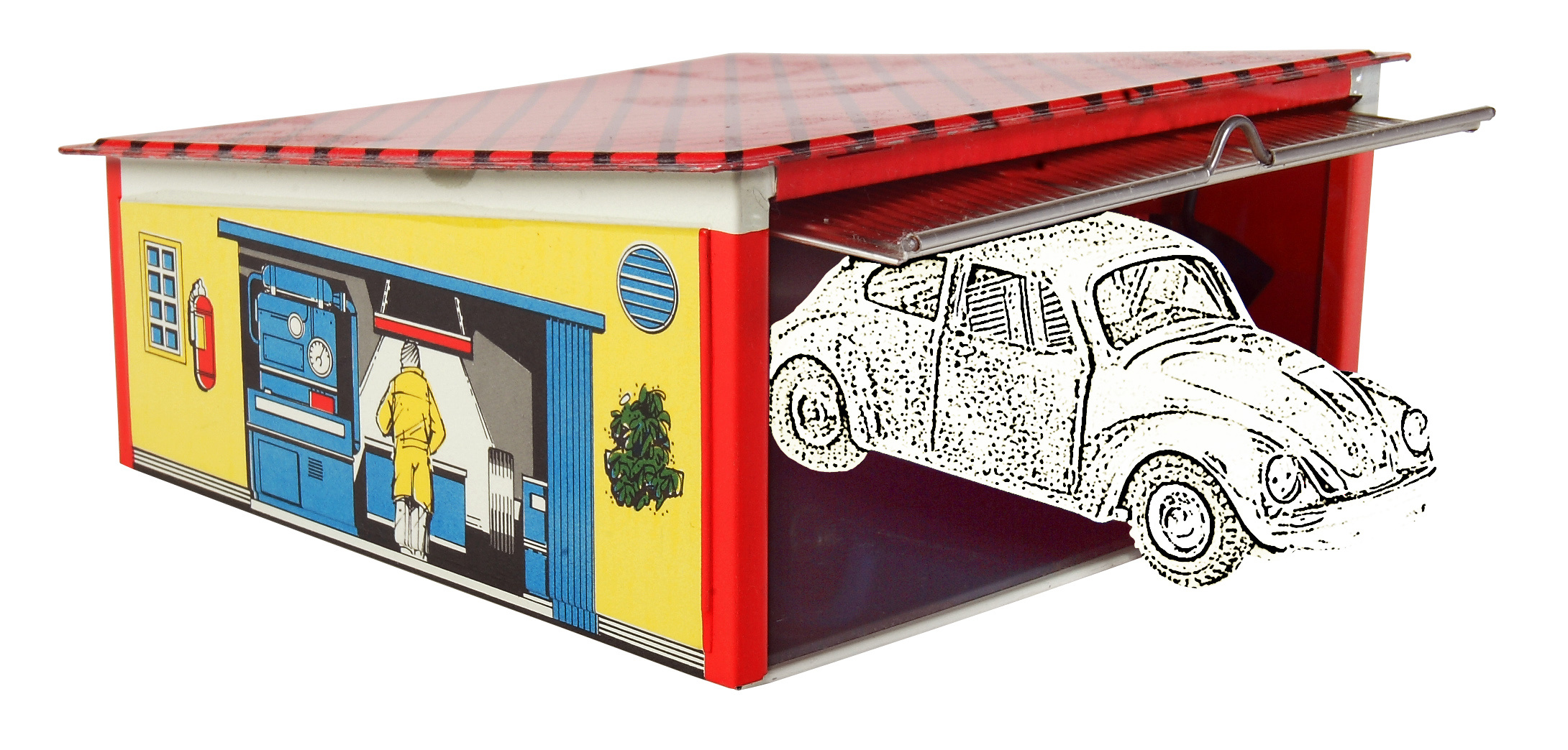 Kovová garáž od tradičního českého výrobce kovových hraček je ideální pro všechna malá auta značky Kovap. Garáž má zvedací dveře a pěkné ilustrace po bocích garáže.