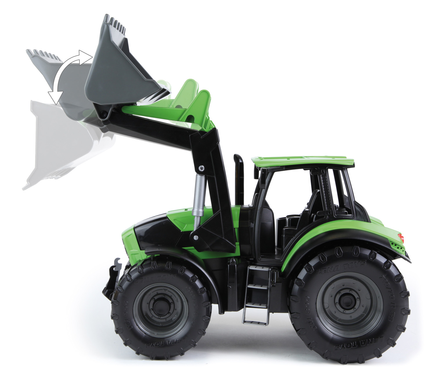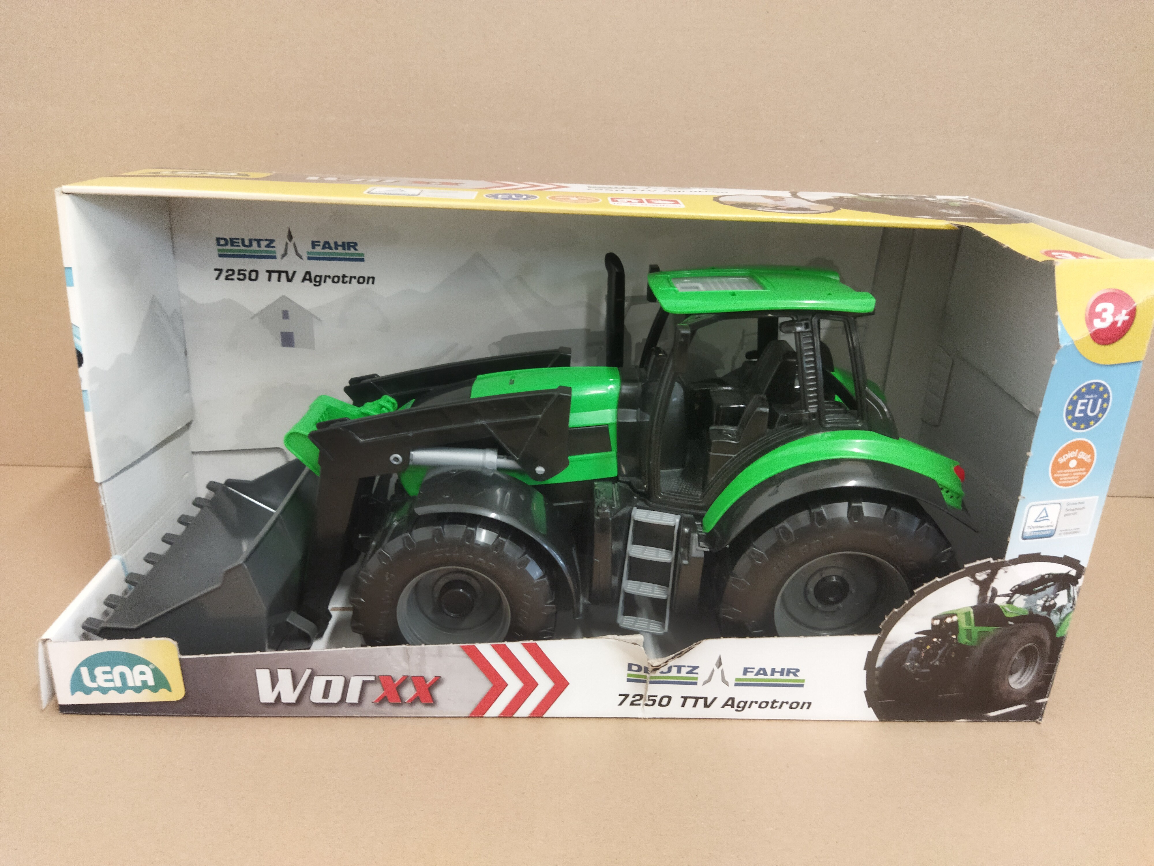 Traktor Deutz Fahr Agrotron 7250 je velmi kvalitní, funkční a odolná plastová hračka vyrobena v měřítku 1:15. Traktor má kovové osky kol o průměru 6 mm a pohyblivou radlici.