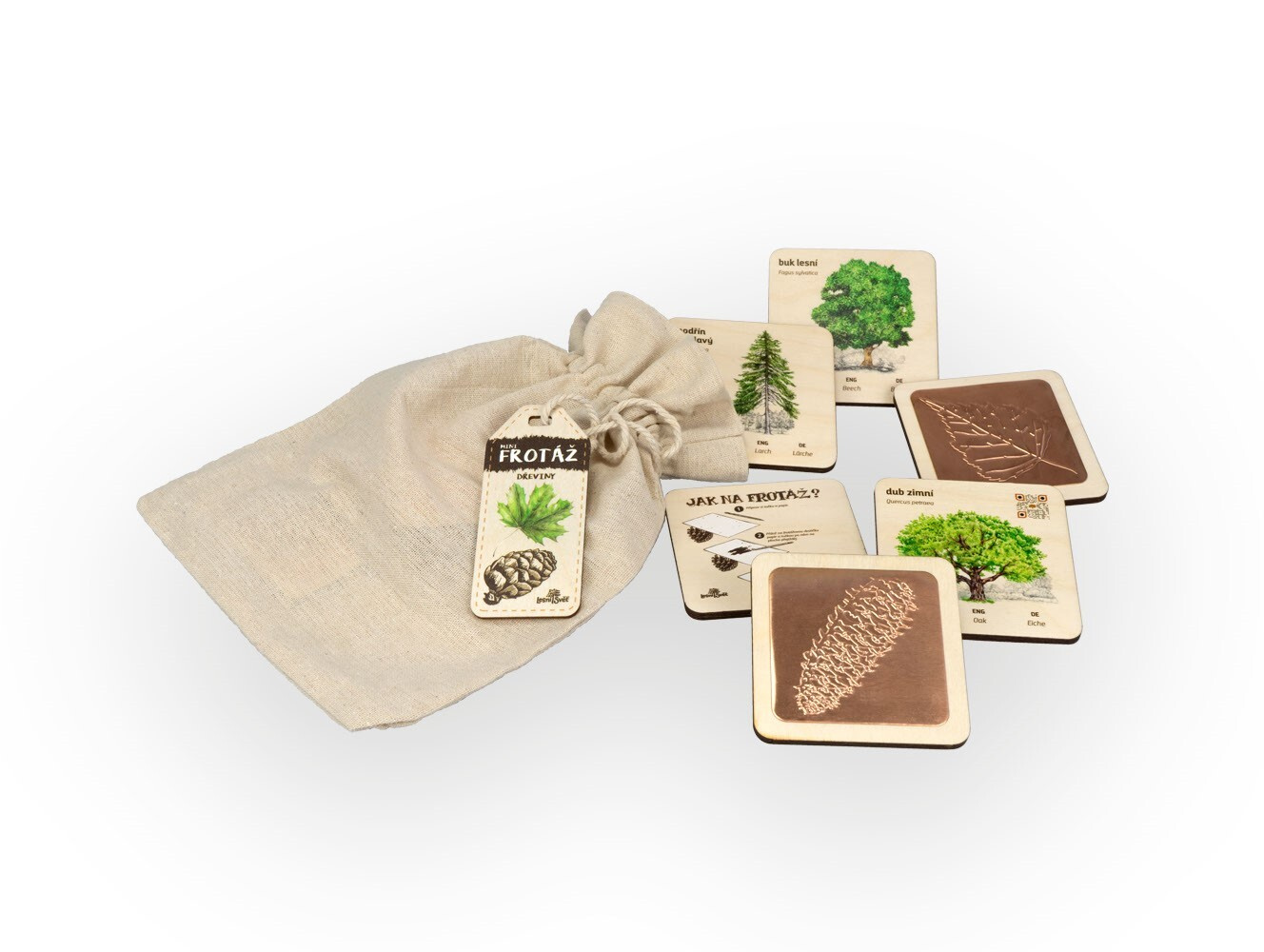- Mini frotážová sada – Dřeviny: Naučte děti vytvářet otisky textur stromů.
