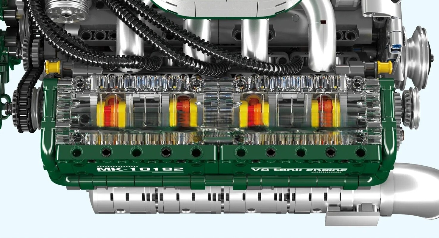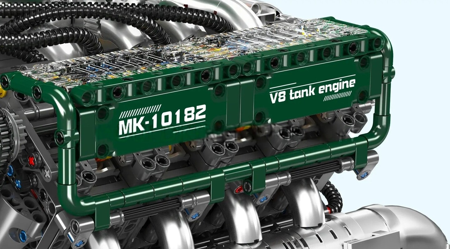 Objevte sílu inženýrství a mechaniky s realistickým modelem tankového motoru V8 od značky Mould King. Tato prémiová stavebnice představuje nejen výzvu pro vaše stavitelské dovednosti, ale i fascinující pohled do útrob funkčního motoru – tentokrát v kostkách.