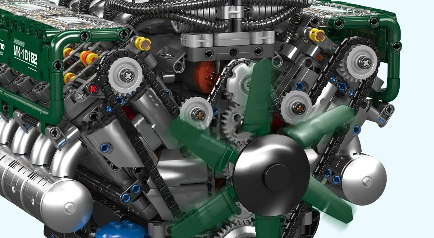 Model sestavíte z 2250 precizně zpracovaných dílků, které do sebe perfektně zapadají a vytvářejí komplexní mechanismus s řadou pohyblivých částí. Během stavby se seznámíte s konstrukcí skutečného motoru – od klikové hřídele až po písty a chladicí systém.