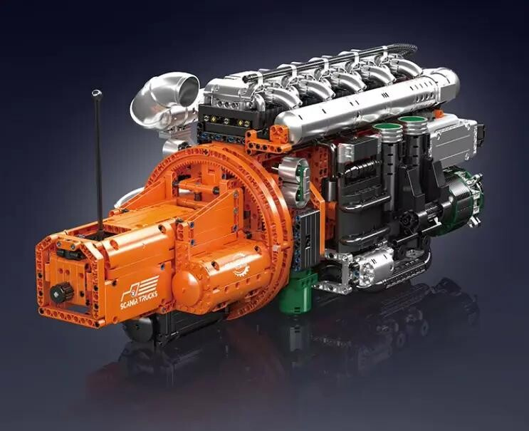 Poznejte, jak funguje skutečný motor s převodovkou – krok za krokem. Tato velkolepá stavebnice od Mould King přináší model motoru Scania s realistickými detaily, funkční řadicí pákou i pohyblivými písty.