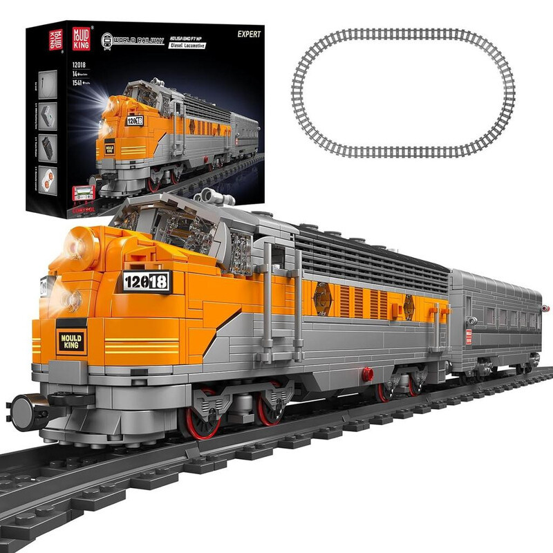 Mould King 12018 Americká dieselová lokomotiva EMD F7 s vagonem R/C