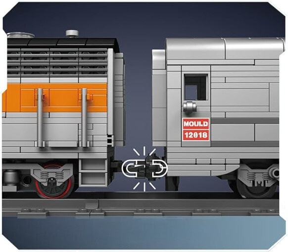 Model je zhotoven v klasické kombinaci oranžové a šedé barvy a vyniká kvalitním a pevným zpracováním. Součástí stavebnice je také LED osvětlení, které umožňuje vlaku skutečně svítit předními světlomety. Vrchní část vagonu a lokomotivy lze snadno sundat, což vám umožní prozkoumat detaily uvnitř. A můžeme vás ujistit, že jich je opravdu hodně. Jak je u stavebnic Mould King zvykem, důraz je kladen nejen na exteriér, ale také na vnitřní vybavení. Tento vlak tak obsahuje pečlivě zpracovaný interiér, který zahrnuje sedadla, stoly, zázemí pro občerstvení, a dokonce i detailně propracovanou kabinu s různými ovládacími prvky pro strojvedoucího.