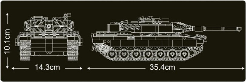 Postavte si ikonický německý tank Leopard 2 v realistické pouštní kamufláži a užijte si jeho plně funkční dálkové ovládání! Tento model věrně odpovídá skutečné předloze, a to jak tvarem, tak detailním zpracováním. Ovládání tanku je možné buď přiloženým dálkovým ovladačem (je součástí balení), nebo přes mobilní aplikaci MK Tech.