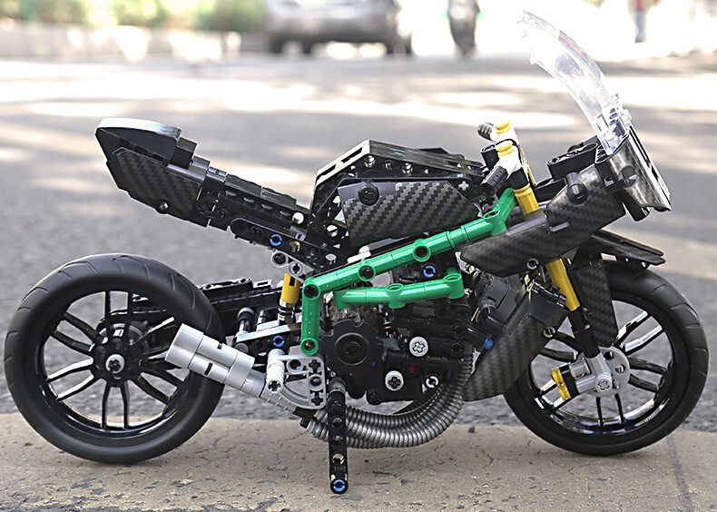 Vstupte do světa rychlosti a technické dokonalosti se stavebnicí Mould King 23002 Silniční motocykl HZ-R. Tento moderní motocykl s futuristickým designem ve stylu uhlíkových vláken vás uchvátí svým realistickým zpracováním a dynamickými funkcemi.