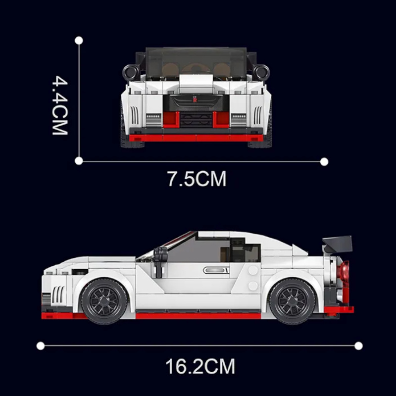 Tento model mini závodního vozu GT-R nabízí detailní repliku s propracovaným designem, elektrolyzovaný model motoru V6, výfukové potrubí, ručně otevíratelné dveře, kapotu a kufr. Má elektrolyzované ráfky a pohyblivou karoserii a je dodáván v luxusním balení. Model sportovního vozu Mould King Nissan GT-R je sestaven z 378 dílků a po sestavení vůz měří 19,5 x 9,5 x 8,5 cm.
