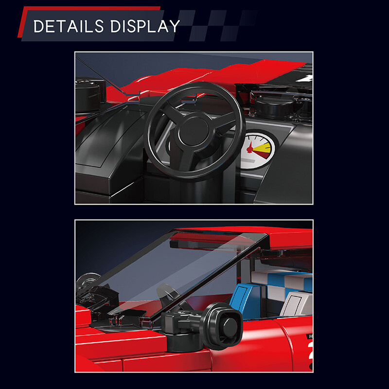 Stavebnice obsahuje 481 dílků a je vhodná pro děti od 8 let i dospělé fanoušky automobilového designu. Součástí balení je i průhledný výstavní box, který chrání model před prachem a umožňuje jeho snadné vystavení. Díky dvěma řadám nopů je možné autíčko pevně uchytit k platformě a boxy navzájem skládat – ideální pro sběratele.