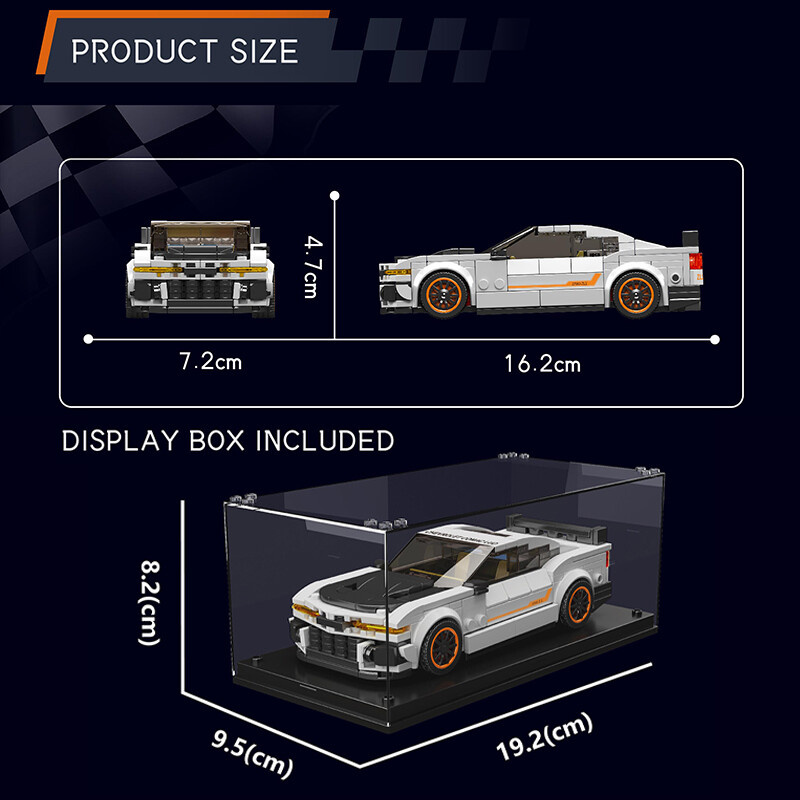 Model je součástí sběratelské série Model Car a je uložen ve stylovém průhledném výstavním boxu, který chrání stavebnici před prachem a umožňuje její snadné vystavení. Díky dvěma řadám nopů je možné autíčko pevně přichytit k podstavci a boxy vrstvit na sebe – ideální pro sběratele, kteří chtějí mít svou kolekci hezky pohromadě.
