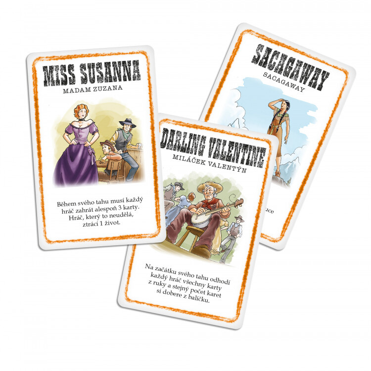 Nové karty odpovídají svému názvu: Divoký západ. S tímto rozšířením bude základní hra opět o něco divočejší a nové postavy jsou velmi nápadité. Můžete se zde setkat se Zuřivou Dorotou, Madam Zuzanou nebo si zahrát roli Tern Killa.