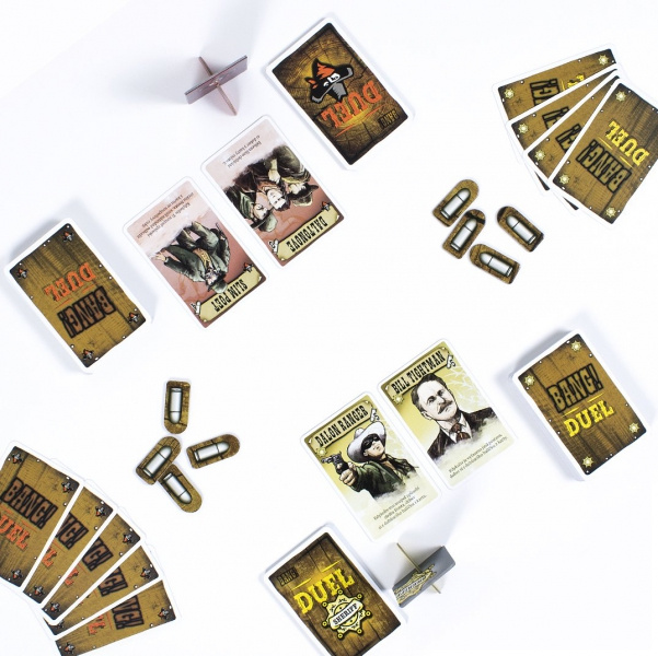 Bang Duel je samostatná hra pro dva hráče, ke které nepotřebujete základní hru Bang!. Hráči si rozdělí strany, za které budou hrát – muži zákona proti banditům. Zvítězí ostřílení strážci zákona nebo se jako poslední budou smát nelítostní bandité?