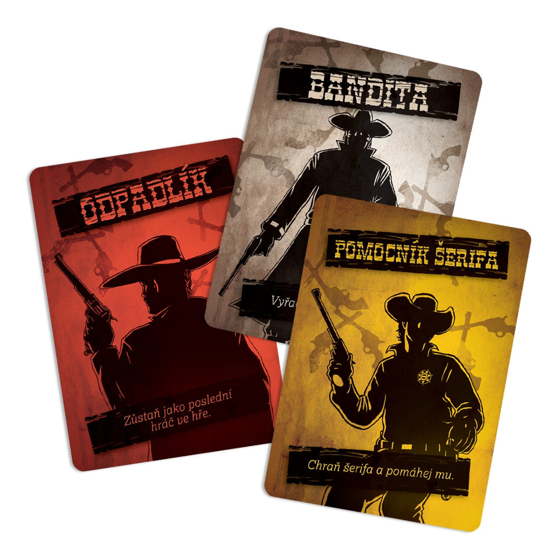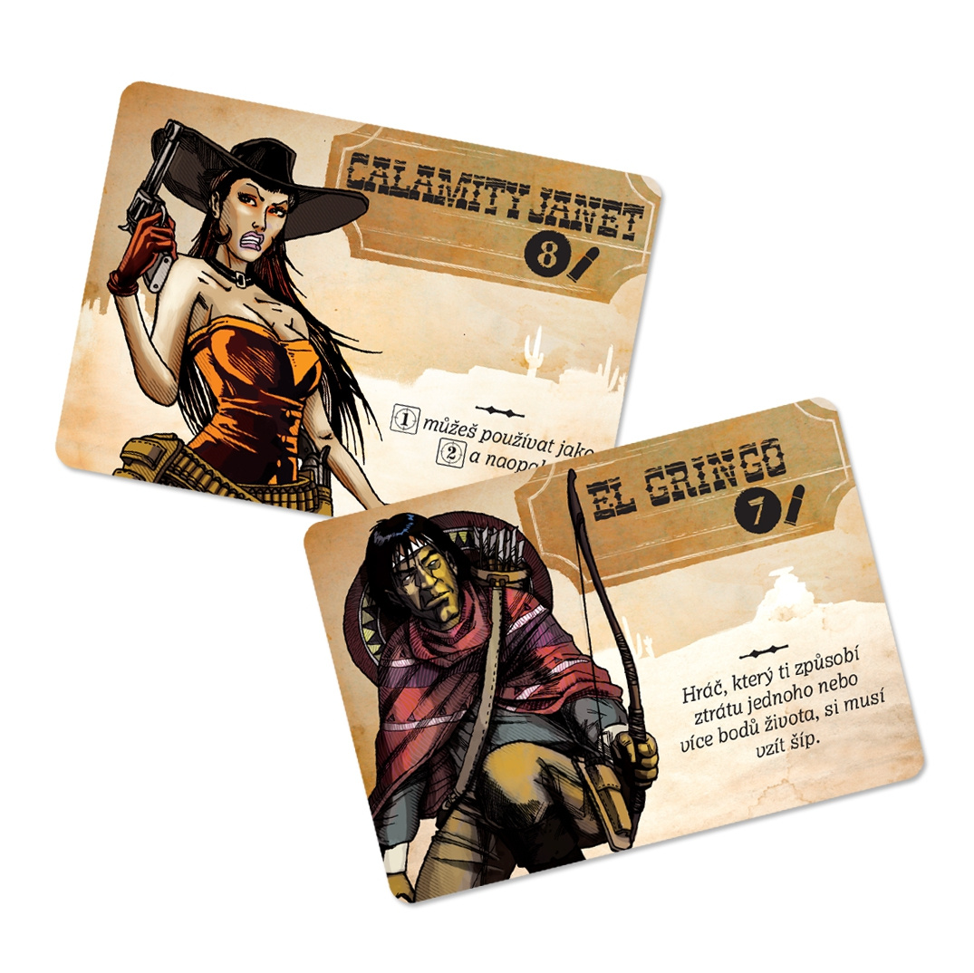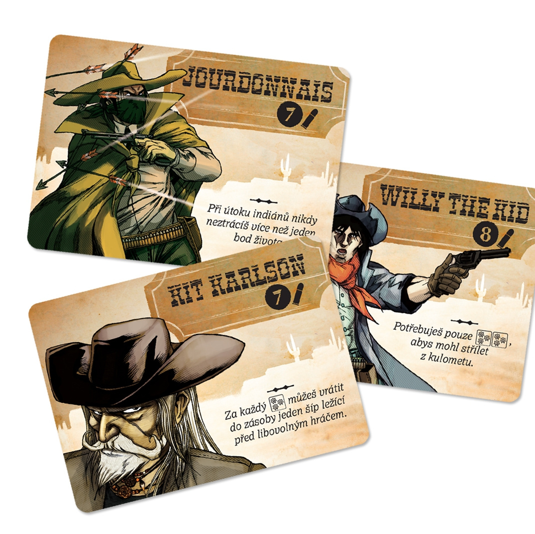 Hra obsahuje: 5 kostek, 30 karet, 9 žetonů šípu, 40 žetonů nábojů a pravidla.