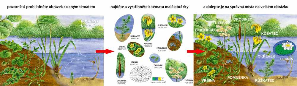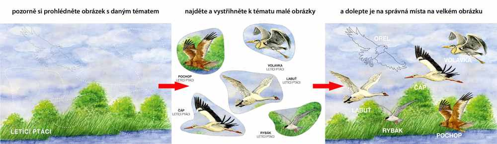 Novinka pro úplné začátečníky: děti nejprve vystřihnou jednotlivé díly skládačky a pak je nalepí do předtištěných předloh. Orientují se pomocí očíslování jednotlivých dílků a podle barevné předlohy.