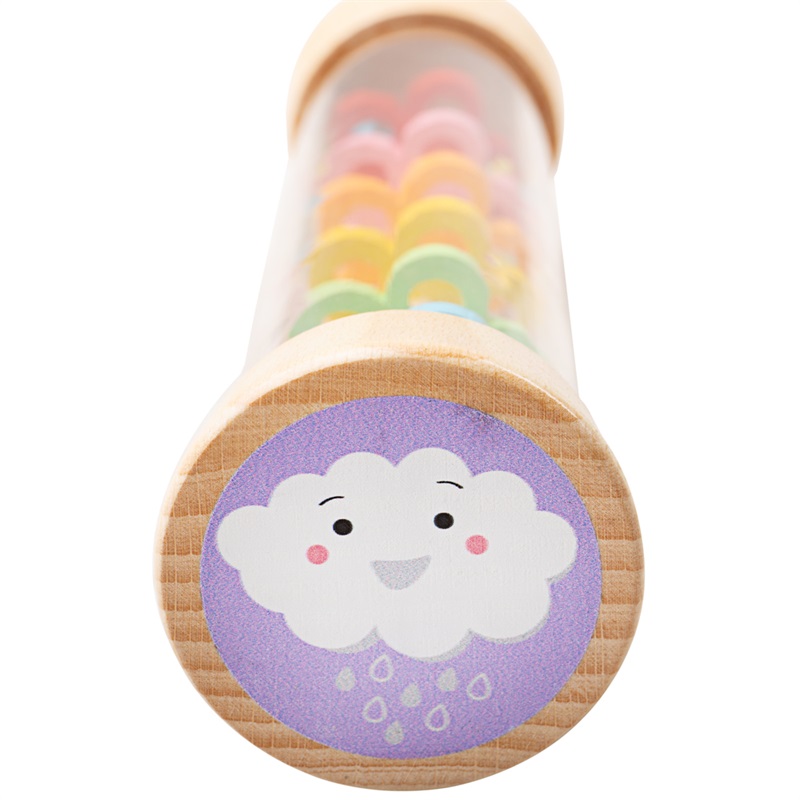 Roztomilá dřevěná hračka, která vydává zvuky deště. Při otáčení válcovité hračky se začnou pohybovat barevné perličky uvnitř, vytvoří zajímavý vizuální i zvukový efekt. Na obou stranách najdete dřevěné zátky s krásnou ilustrací slunce a mraku. Vyrobeno z kvalitních materiálů ze zodpovědných zdrojů. Splňuje evropské bezpečnostní standardy.