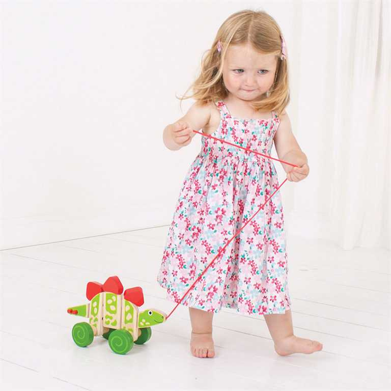 Táhněte svého Stegosaura! Hračka podporuje obratnost a sebevědomí vašeho dítka. Tento dřevěný dinosaurus je vybaven barevnými kolečky a má pohyblivé klouby pro spoustu ohebných a kroutivých momentů.