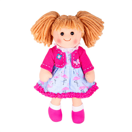 Seznamte se s Maggie! Tato měkká a mazlivá látková panenka jen čeká na lásku a přátelství svého nového nejlepšího přítele či přítelkyně. Její krásný outfit se skládá z modrých šatů se vzorem růžových plameňáků a růžového bolerka. Svým milým úsměvem si jistě získá srdce dítěte na první pohled. Vyrobeno z kvalitních materiálů z odpovědných zdrojů. Odpovídá evropské bezpečnostní normě.