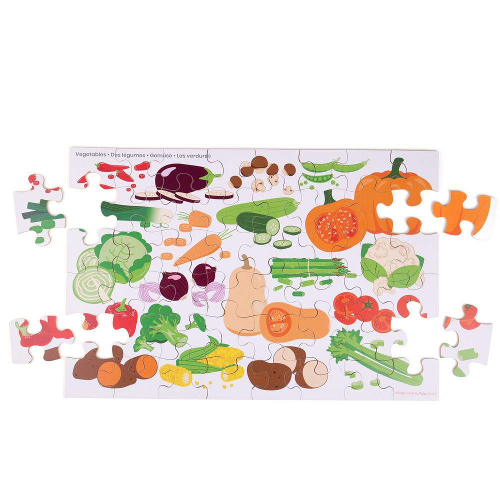 Toto 48dílné podlahové puzzle bylo navrženo tak, aby upoutalo a vzdělávalo nejmenší. Je zábavné sledovat, jak se scéna puzzle skládá dílek po dílku. Dokážete rozpoznat dýně? A co papriky? Umístěte kousky skládačky k sobě a vytvořte krásnou scénu plnou zeleniny. Díky velikosti je podlahové puzzle ideální pro skupinovou hru, kde se mohou připojit kamarádi i rodina.