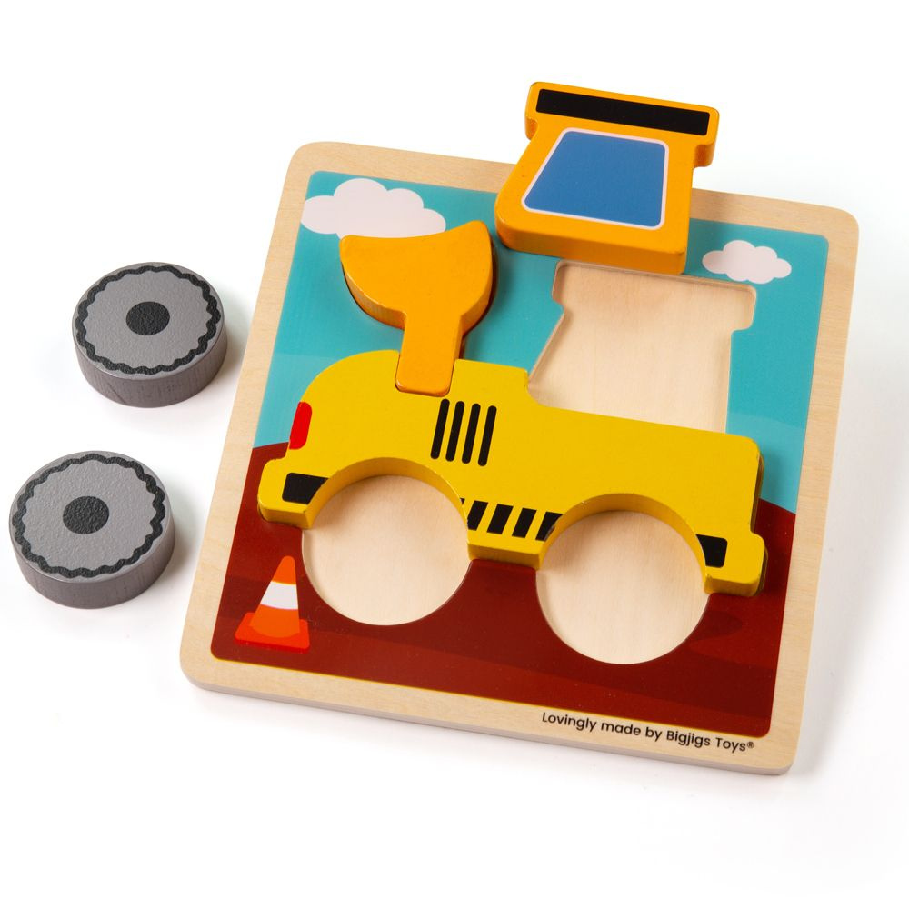 Ideální první dřevěné puzzle pro nejmenší. Robustní vkládací puzzle s velkými dílky, které vytvoří bagr. Skvělý způsob procvičení jemné motoriky, logického myšleníá a poznávání tvarů a barev. Toto dřevěné puzzle pro batolata je dodáváno s hladkou dřevěnou základní deskou s malovanou scénou. Batolata mohou také procvičovat počítání dílků skládačky od 1 do 5. Pomáhá také rozvíjet jemné motorické dovednosti a zručnost.