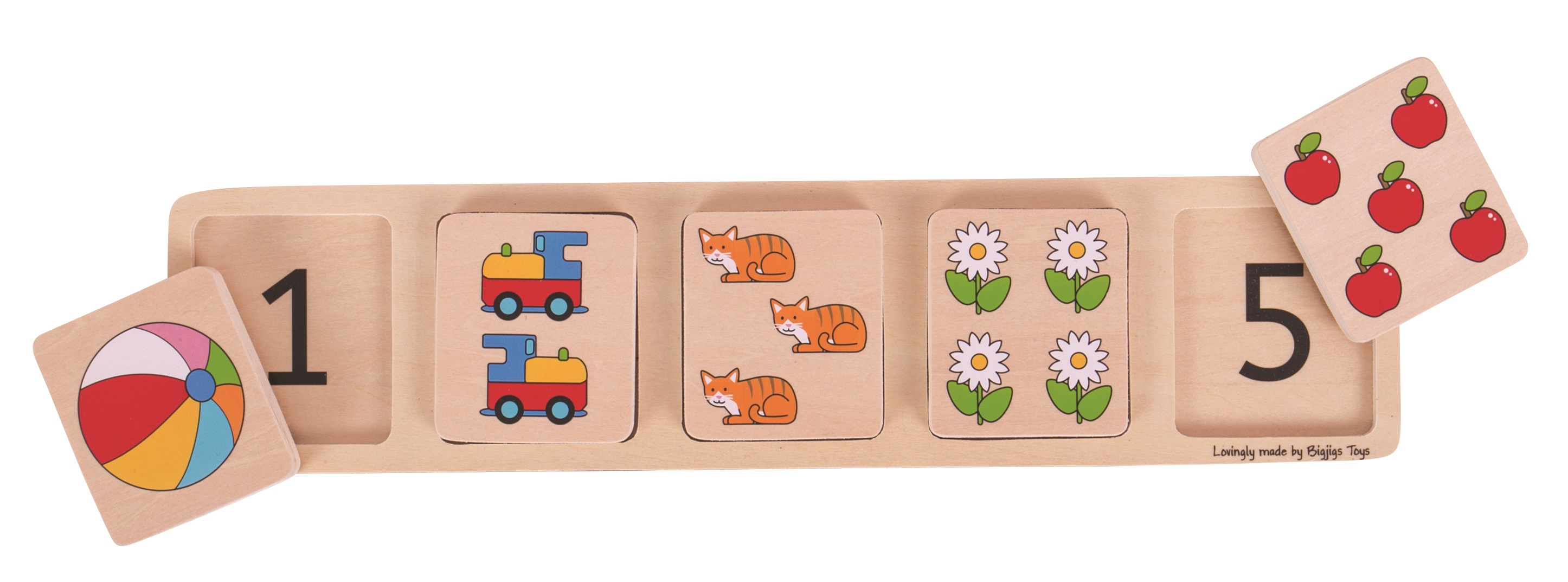 Spočítejte počet obrázků na jednom dílku puzzle a přiřaďte jej ke správnému číslu na základní desce. Zábavná hra pro rozvoj základních dovedností počítání. Toto masivní dřevěné puzzle obsahuje 5 dílků, které jsou velkoryse velké, aby je malé ručičky snáze zvedaly, uchopovaly, zkoumaly a vyměňovaly. Dřevěné puzzle Bigjigs Toys pomáhají dětem rozvíjet slovní zásobu, vybavit si slova, když rozpoznávají tvary, barvy a obrázky. Dřevěné základní desky puzzle Bigjigs Toys jsou potištěny obrázky nebo barvami, které napomáhají procesu učení a zvyšují vzdělávací hodnotu.