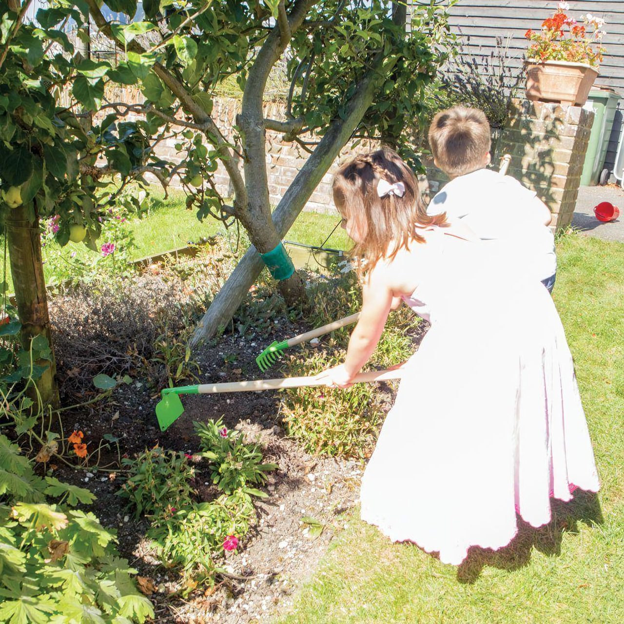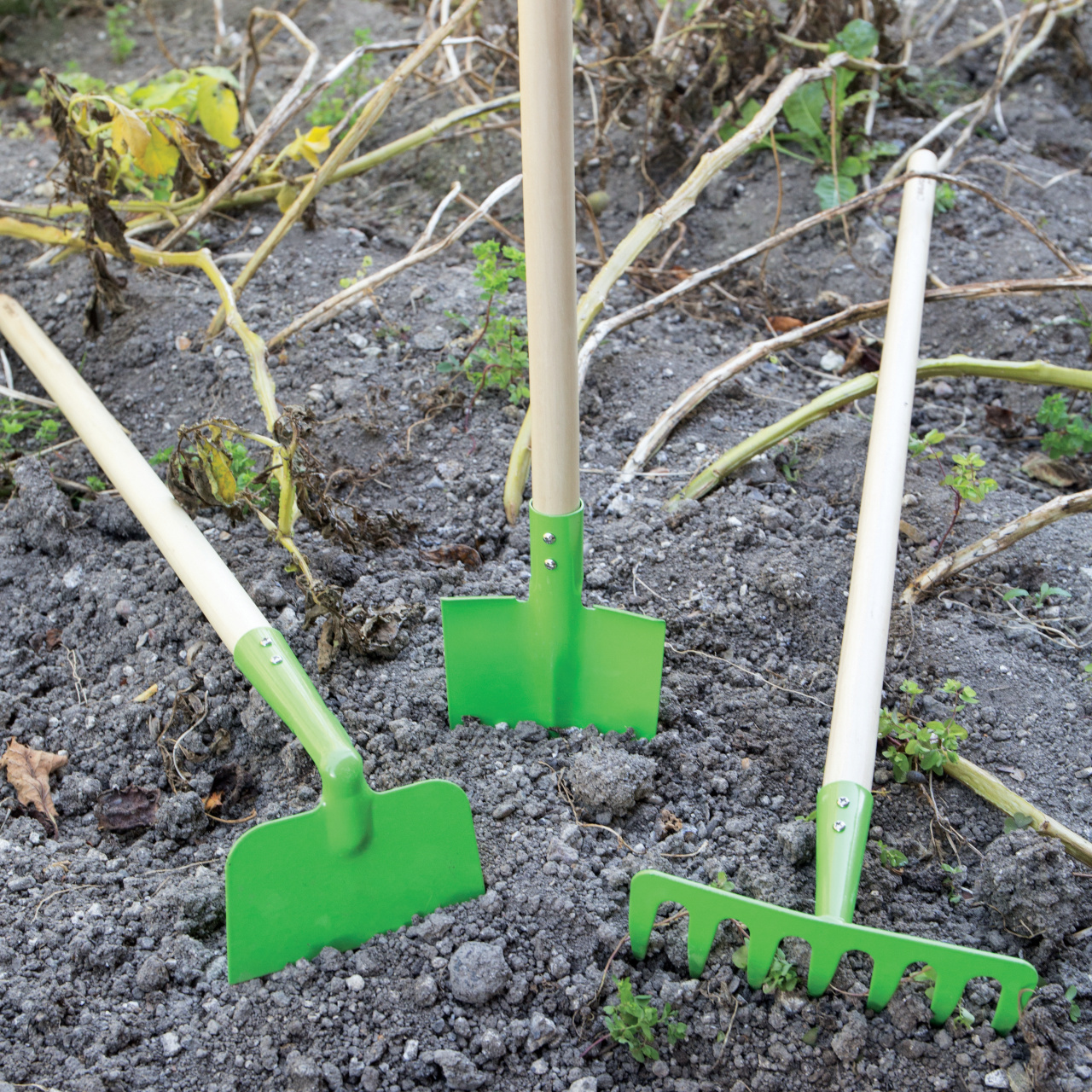 Malí zahradníci si zamilují robustní zahradnické hrábě zelené s dlouhou rukojetí. Ideální při práci na zahradě s mámou a tátou. Zahradní doplňky dostupné v zahradnickém sortimentu Bigjigs Toys zahrnují zahradnický pás, tašku s nářadím, zahradnické rukavice, nářadí s dlouhou rukojetí, konve, kbelíky, ruční nářadí a zástěru.