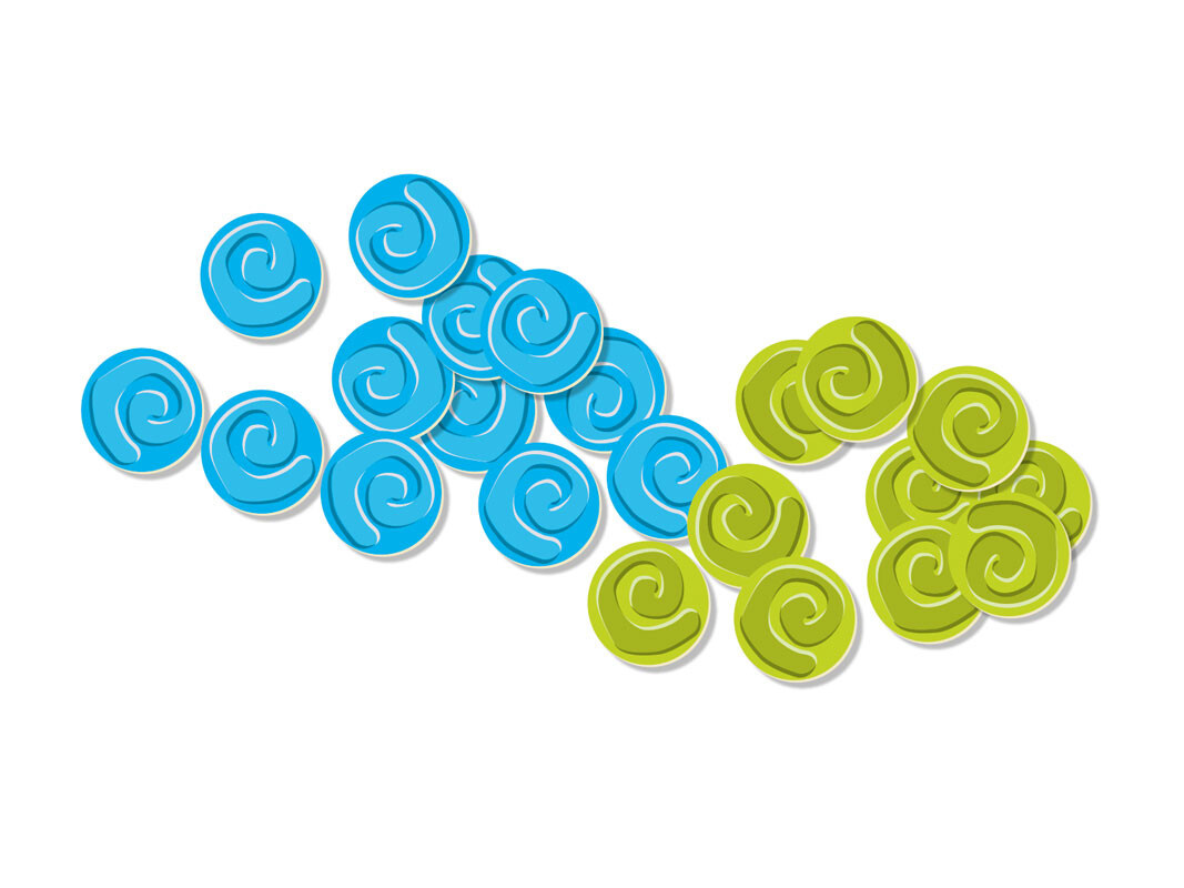 - 50 magnetických hracích žetonů ve 2 barvách, průměr 18 mm