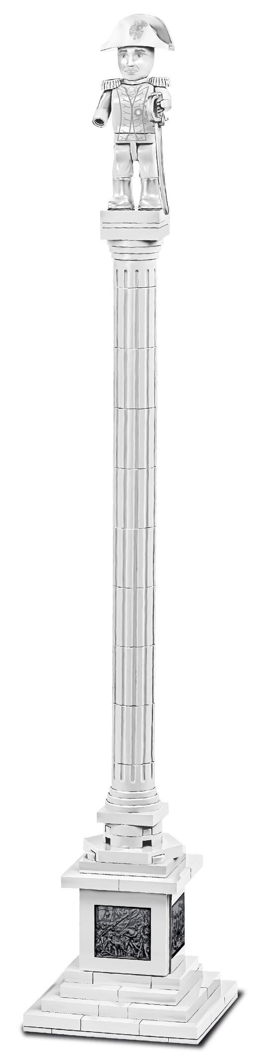 Model Nelsonova sloupu od COBI (série Napoleonic Wars) je zmenšenou verzí skutečného pomníku admirála Horatia Nelsona, který se tyčí na Trafalgarském náměstí v Londýně. Skládá se z 80 kostek a obsahuje i detailně zpracovanou figurku admirála v uniformě. Stavebnice je určena pro děti od 6 let a potěší i dospělé sběratele díky propracovaným detailům, kvalitním potiskům (žádné samolepky) a historickému významu. Model měří 27 cm na výšku a 5 cm na šířku a zabere minimální prostor – ideální jako dekorace nebo součást větší diorámy z období napoleonských válek.