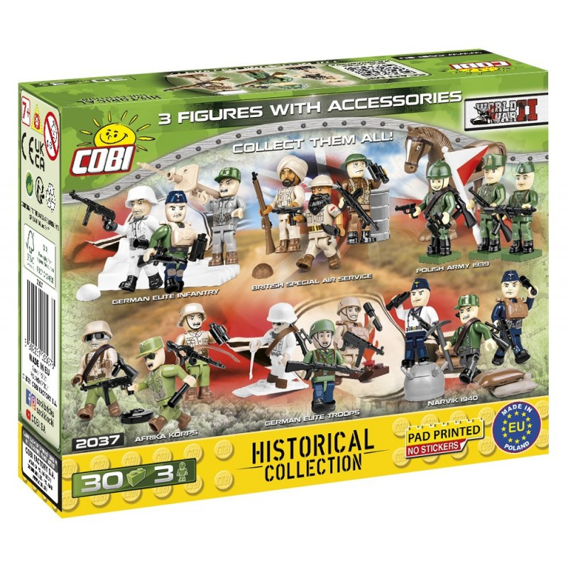 Originální a velmi kvalitní figurky různých armád jsou plně kompatibilním doplňkem ke stavebnicím COBI s vojenskou tematikou. Každá z figurek je vybavena pro ni typickou zbraní a dalšími doplňky. Potisky jsou provedeny technologií, která znemožňuje jejich setření během intenzivní dětské zábavy. Figurky jsou vhodné pro tvorbu válečných scének a dioramat.