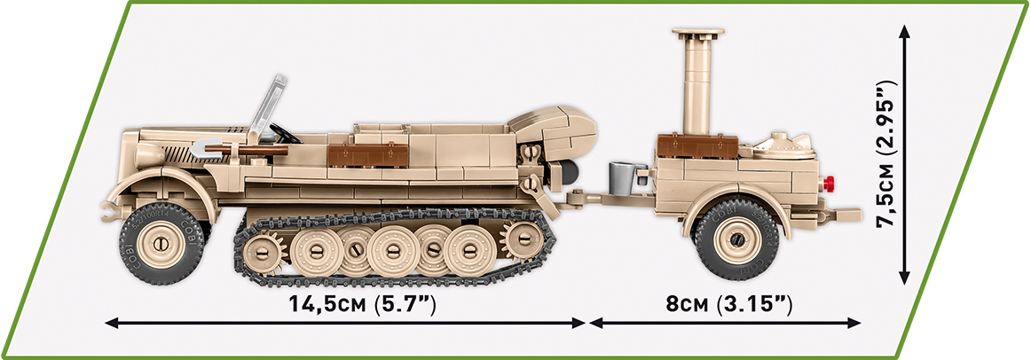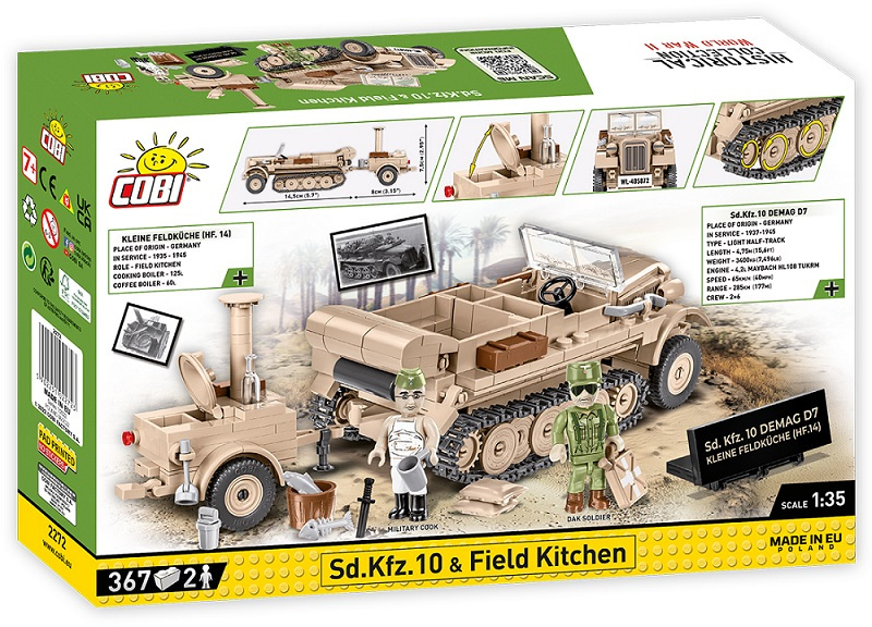 Postavte si model vozidla Demag D7 (Sd.Kfz. 10) v rozšířené EXECUTIVE EDITION, který je obohacen o model německé polní kuchyně HF.14 v měřítku 1:35. Polní kuchyně se samostatně neprodává a je k dispozici pouze v této sadě. Stavebnice obsahuje figurky vojáka Afrikakorps a kuchaře. Obě postavy jsou vybaveny četnými doplňky, jako jsou kanystr, rýč, nůž, ryba, pohár, krabice a kbelík. Stavebnice se skládá z 367 částí. Sestavený model měří 14,5 cm na délku, 6,5 cm na šířku a 6 cm na výšku. Kuchyně měří 8 cm na délku, 5 cm na šířku a 7,5 cm na výšku.