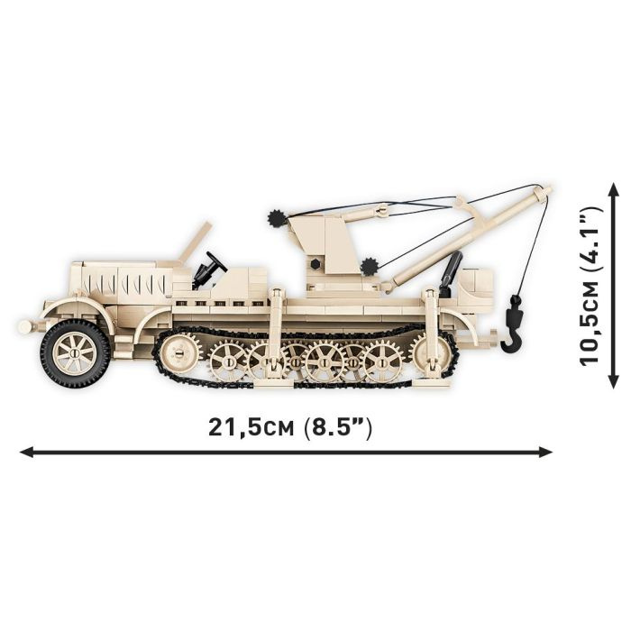 Postavte si model německého polopásového vozidla Sd.Kfz. 9/1 FAMO v měřítku 1:35. Model má pohyblivé prvky, jako jsou otočná kola, otočný jeřáb vybavený pohyblivým ramenem a funkčním navijákem, zvýšené podpěry, hák k zavěšení bloku motoru. Sestavený model se skládá ze 498 dílků a měří 21,5 cm na délku, 12,5 cm na šířku a 10,5 cm na výšku. Sada obsahuje jednu figurku mechanika.