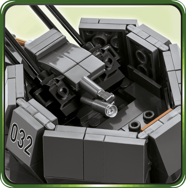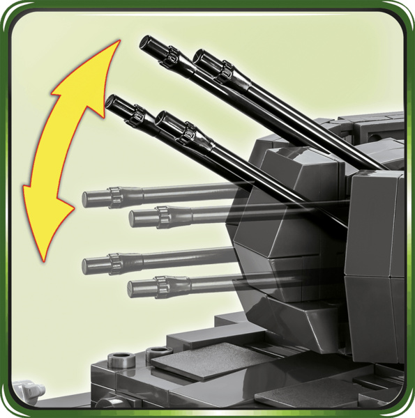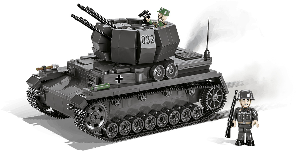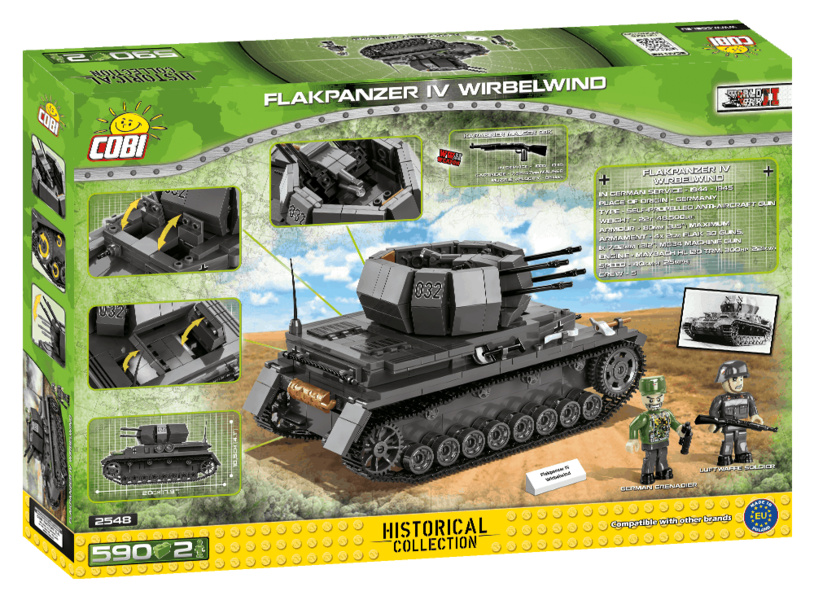 Postavte si model německého protiletadlového kompletu Flakpanzer IV Wirbelwind. Čtyřhlavňový protiletadlový kanon v otočné věži na podvozku tanku Panzer IV má řadu pohyblivých částí včetně krytu motoru a funkčních pásů. Balení obsahuje 590 kostek a také 2 figurky vyzbrojené ručními zbraněmi. Vystřižením z návodu získáte sběratelskou kartu Cobigames.