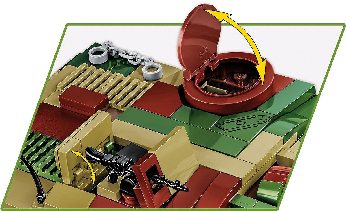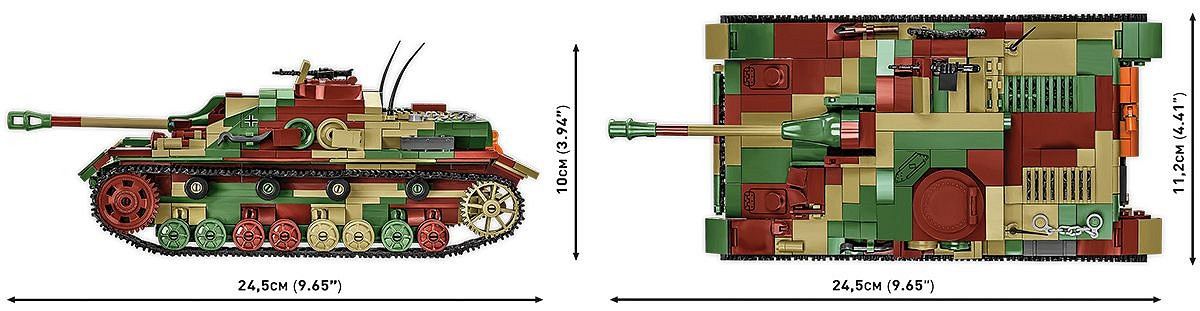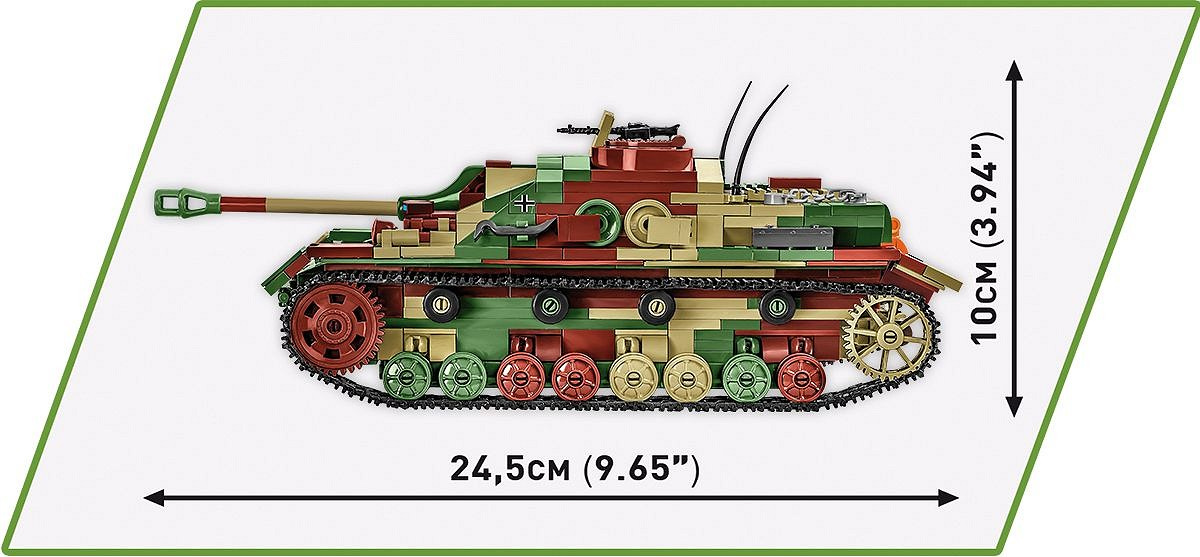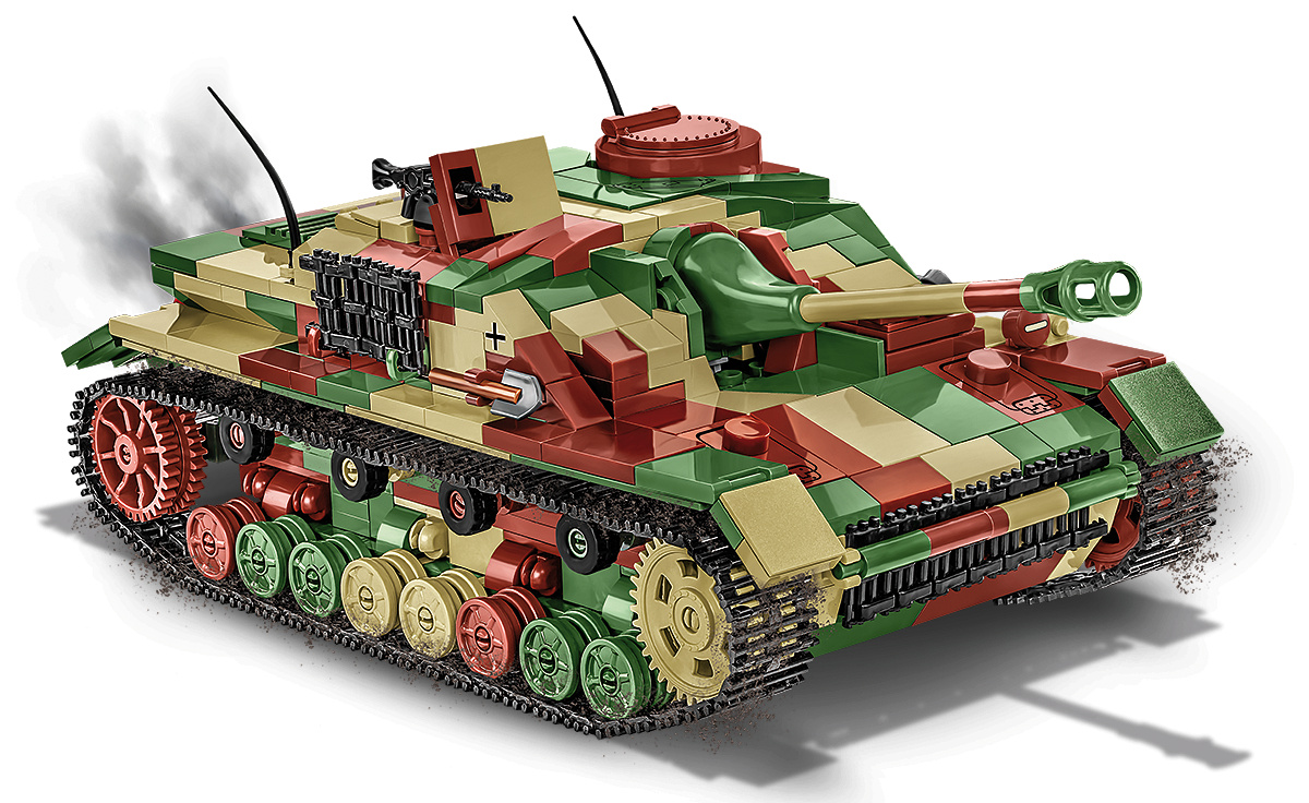 Postavte si model útočného děla StuG IV v měřítku 1:28. Sestavený model měří 24,5 cm na délku, 11,2 cm na šířku a 10 cm na výšku. Model nabízí přístup k servisnímu poklopu, pod kterým je vyjímatelný motor Maybach. Dalšími pohyblivými prvky jsou kanon, který lze posouvat do stran, otevírací poklopy průlezů pro posádku a funkční pásová trakce. Stavebnice obsahuje 952 dílků včetně stojánku s názvem.