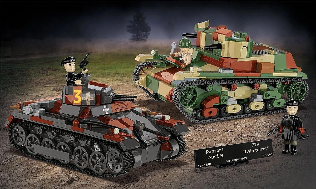 Panzer I a 7TP představují dvě odlišné konstrukční filozofie doby – zatímco Německo tajně vyvíjelo lehké tanky pod krycím jménem „traktor“ kvůli omezením Versailleské smlouvy, Polsko sáhlo po britské inspiraci kvůli nedostatku vlastních zdrojů. Oba tanky sehrály klíčovou roli v raných bojích – zejména v bitvě u Mokry, kde 7TP s moderním kanónem Bofors dokázal zničit několik vozidel 4. pancéřové divize. Přestože se polské síly v konečném důsledku musely stáhnout, šlo o jednu z nejúspěšnějších tankových operací počátku války. Tento set není jen stavebnicí – je to živá připomínka odvahy, taktiky a zlomového historického okamžiku.