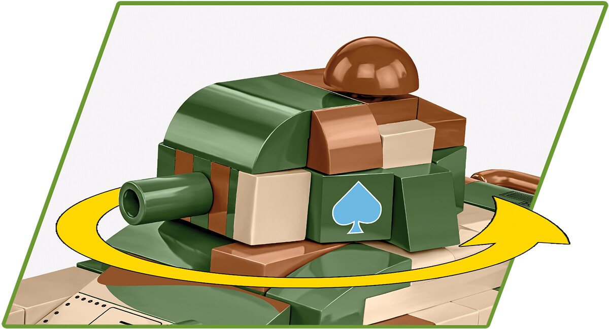 Sestavte si model francouzského pěchotního tanku Renault R-35 z období druhé světové války v měřítku 1:48 má rozměry 9 cm na délku, 5 cm na šířku a 5,5 cm na výšku. Model má otočnou věž s pohyblivým kanonem. Pásy tanku jsou funkční. Stavebnice má 258 dílků.