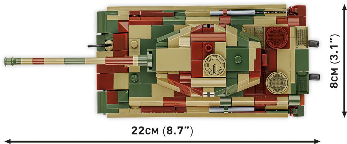 Panzerkampfwagen VI Ausf. B Tiger II, známý jako Königstiger (Královský tygr), patří k nejikoničtějším bojovým strojům druhé světové války. Do výzbroje německé armády byl zařazen v roce 1944 a stal se jedním z nejsilnějších tanků své doby. Díky přednímu pancíři o tloušťce až 180 mm a výkonnému kanónu 88 mm KwK 43 L/71 byl schopen čelit i těm nejodolnějším spojeneckým obrněncům. Poháněný motorem Maybach HL230 o výkonu 700 koní dosahoval rychlosti až 38 km/h na silnici. Přestože byl bojově mimořádně účinný, trpěl technickými problémy, zejména s pohonnou jednotkou a podvozkem. Celkem bylo vyrobeno pouze 492 kusů, které zasáhly do klíčových bojů na východní frontě i během bitvy o Ardeny. Díky kombinaci impozantního vzhledu, technických detailů a historického významu je model Tiger II od COBI ideální volbou pro všechny milovníky vojenské historie i modelářství.