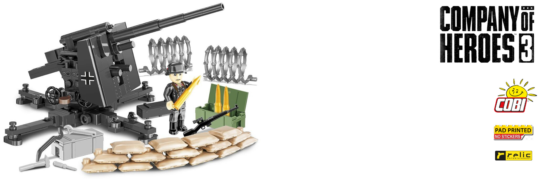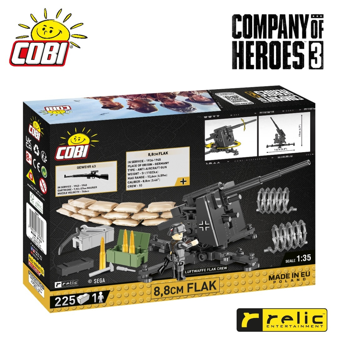 Postavte si německé protiletadlové dělo FlaK 37L/56 označované jako FlaK 88. Model je otočný o 360 stupňů s hlavní pohyblivou nahoru a dolů. Součástí stavebnice je mnoho příslušenství jako bedna s nářadím, pytle s pískem, modelem ostnatého drátu, schránkami na náboje, náboji a vojákem s puškou Mauser 43. Model je sestaven z 225 dílů a je licencován Relic Entertainment pro hru Company of Heroes 3. Rozměry sestaveného modelu jsou (D x V x Š) 18,5 cm x 14 cm x 17 cm.