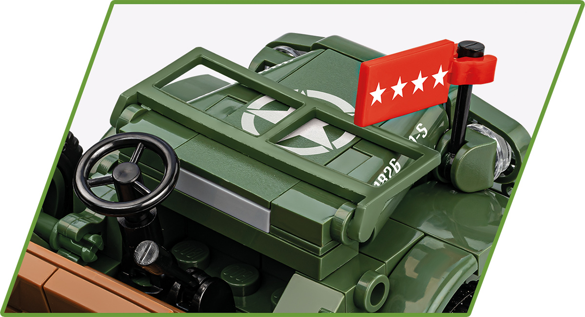 Velitelský vůz Dodge WC 56 je ikonickým americkým vozidlem z období druhé světové války. Tento vůz sloužil především k přepravě důstojníků a zajištění efektivní komunikace na bojišti. Stavebnice obsahuje 208 dílků a dvě figurky vojáků. Model auta v měřítku 1:35 byl vytvořen s důrazem na historickou přesnost a obsahuje detailní potisky podle autentických značek z roku 1944. Jedním z výrazných prvků tohoto modelu jsou otočná kola s gumovými pneumatikami a speciálně navržený blok ve tvaru typické mřížky chladiče. Stavebnice obsahuje 208 dílků a dvě figurky vojáků.