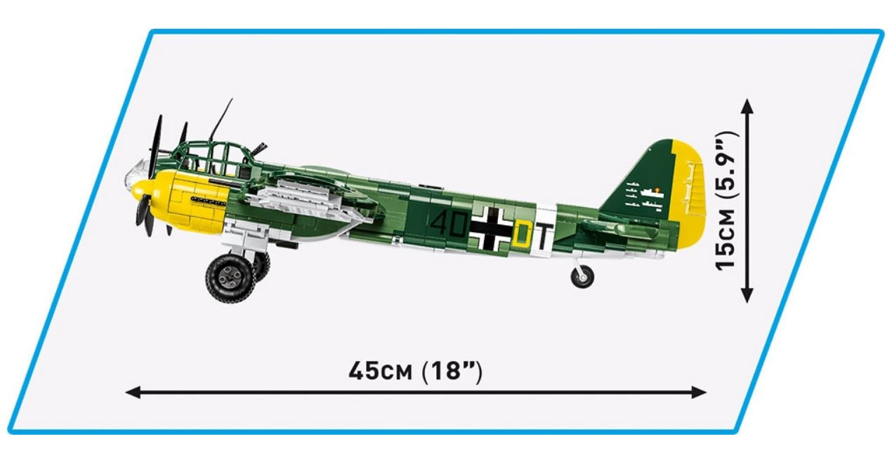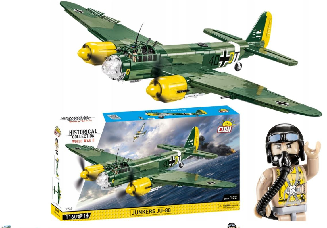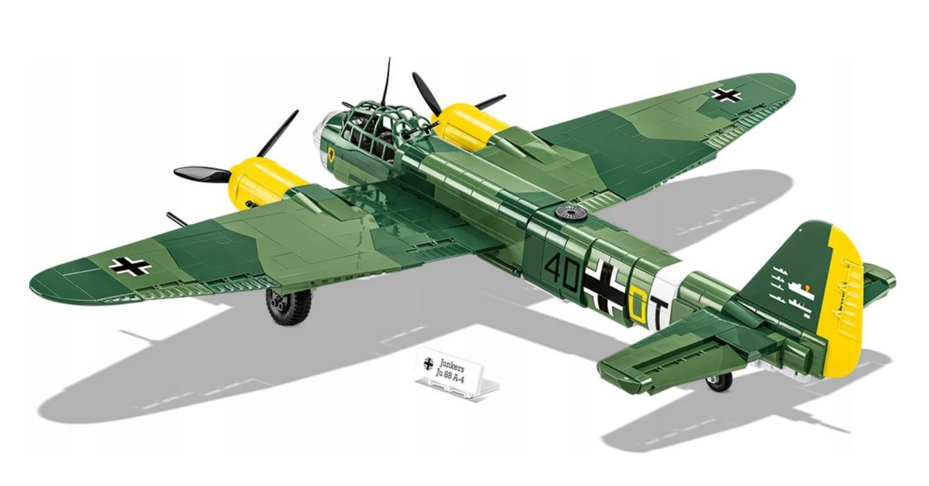 Stavebnice modelu německého víceúčelového bombardéru Junkers JU-88 v měřítku 1:32 má 45 cm na délku, 15 cm na výšku a rozpětí křídel činí 56 cm. Model má pohyblivé části jako jsou otočné vrtule, stavitelné řídící plochy a směrovka. Pod křídly jsou zavěšené letecké pumy a na spodní straně trupu otevírací pumovnice. Podvozková kola nejsou zatahovací, ale lze je jednoduše odejmout. Do realisticky provedené kabiny lze umístit figurku pilota. Sestavený model lze jej umístit ve startovací poloze na podvozku, nebo v letové poloze na přiloženém stojánku.