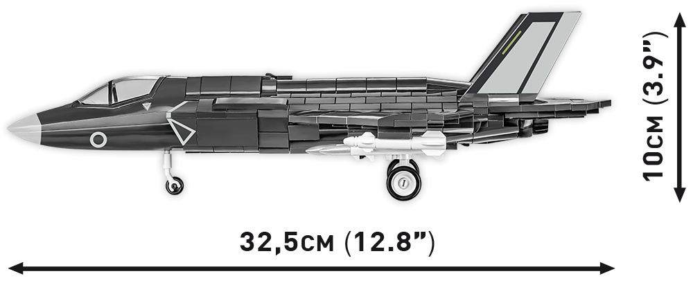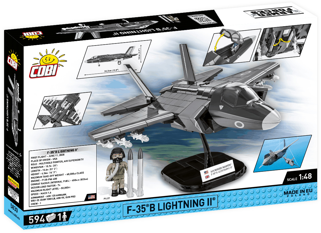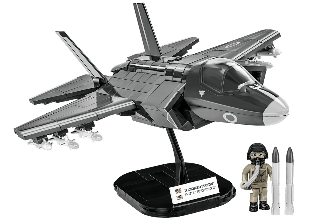Stavebnice letounu 5. generace F 35B Lightning v markingu britského královského letectva měří 32,5 cm na délku, 10 cm na výšku a má rozpětí křídel 21,5 cm. Model v měřítku 1:48 má pohyblivé části jako je otevírací pumovnice, odnímatelný podvozek, otevírací kokpit, do něhož lze usadit pilota. Stavebnice vydaná na základě původní licence Lockheed Martin obsahuje 594 dílků a figurku pilota. Sestavený model lze vystavit ve startovací poloze na podvozku, nebo v letové poloze na přiloženém stojánku.