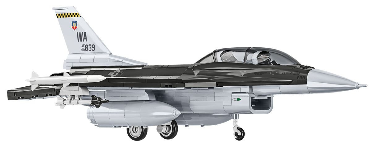 F-16D je speciální dvoumístná verze legendárního stíhače F-16 Fighting Falcon, která kombinuje výcvikové a bojové schopnosti. Tento typ se osvědčil v nespočtu vojenských operací po celém světě, včetně slavné „Operace Pouštní bouře“. Letouny F-16 jsou dodnes symbolem spolehlivosti, přesnosti a technologické převahy. Tato stavebnice není jen hračkou – je to pocta letecké historii i modernímu inženýrství. Skvělý dárek pro všechny fanoušky vojenské techniky, modeláře i sběratele.