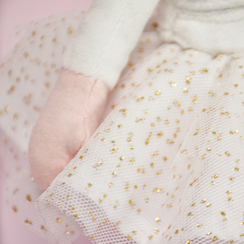 Anais je skutečná malá balerína, která ráda cvičí na parketu se svými přáteli. Má hezkou bílou tutu sukýnku posetou jemnými zlatými třpytkami, bílý zavinovací svetřík, baletní piškoty. Tato půvabná balerínka je prezentována v krásné originální dárkové krabičce s grafikou baleríny.