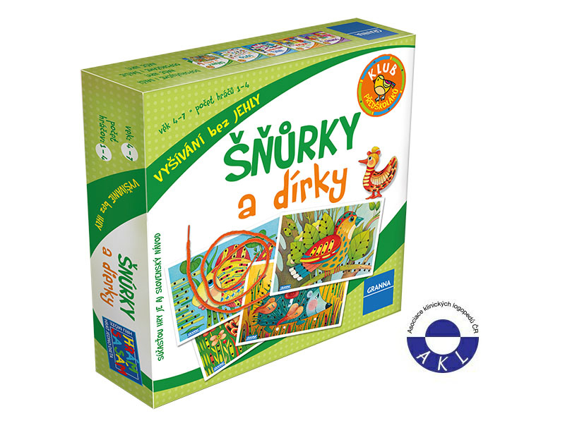 Vzdělávací hra z řady KLUB PŘEDŠKOLÁKŮ pro 1 až 4 hráče od 4 do 7 let v dětech probouzí estetické cítění a cit pro barvy i jejich správnou kombinaci. Zároveň zdokonaluje a procvičuje jemnou motoriku a schopnost soustředění. Děti provlékají otvory v kartičkách různobarevné šňůrky a vytvářejí tak obrázky, které mohou vypadat pokaždé trochu jinak. Vše závisí na fantazii dítěte.
