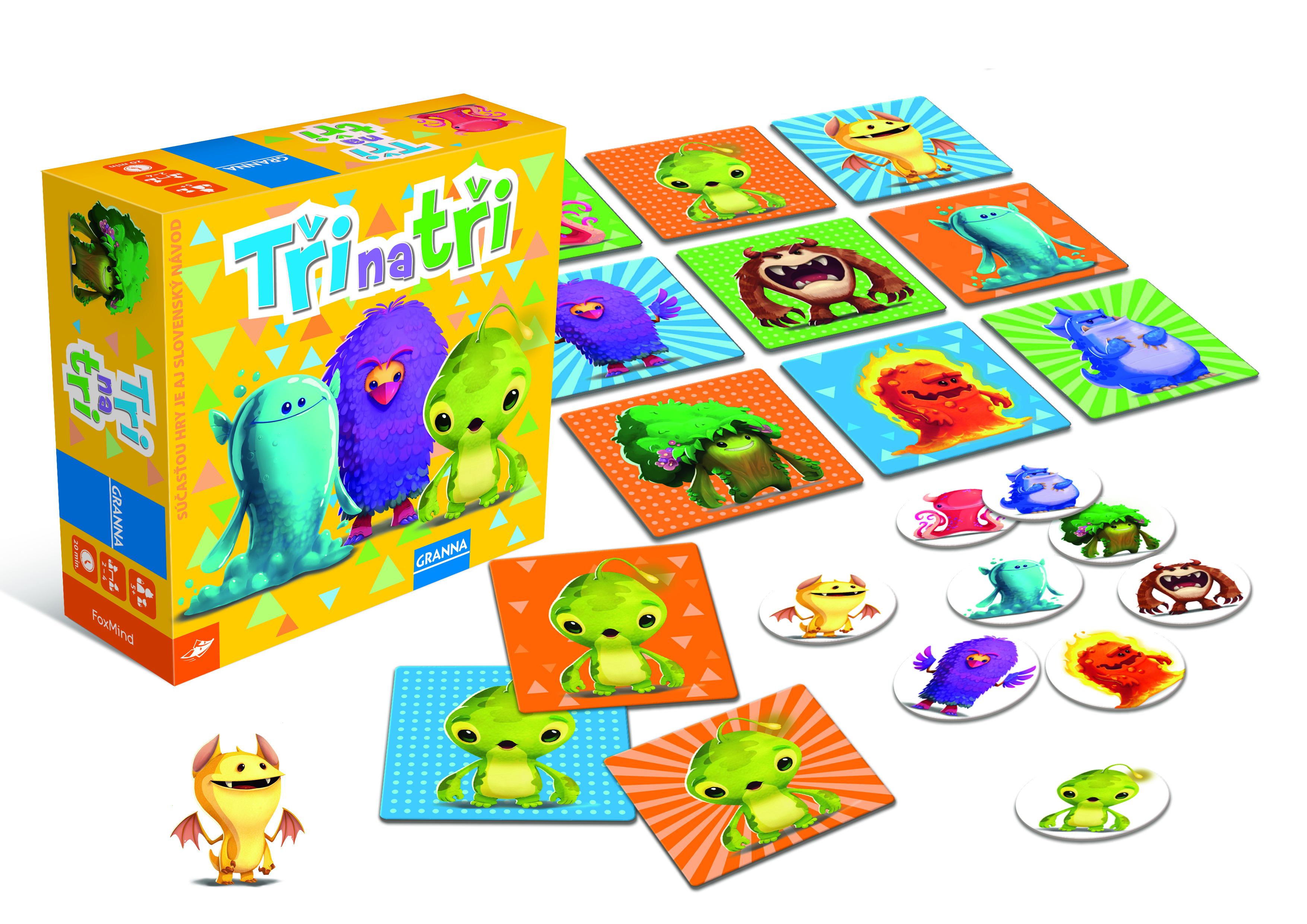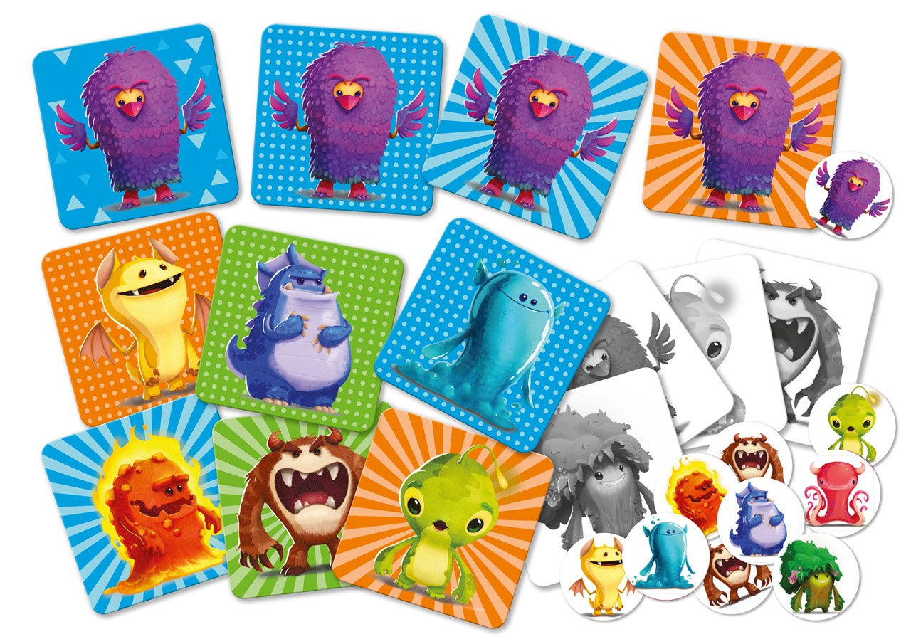 Na stole leží čtverec tvořený devíti startovními kartami s obrázky příšerek. Hráči na ně pokládají karty s odpovídajícími příšerkami a podobně jako v piškvorkách se snaží tvořit vítězné řady; řídí se přitom barvou nebo vzorem pozadí. Hra pro celou rodinu obsahuje dvě varianty s různou obtížností a přináší nejen dobrou zábavu, ale pomáhá také cvičit postřeh, rychlé reakce a schopnost soustředění. Jako dárek se navíc v krabičce skrývá i pexeso zdarma!